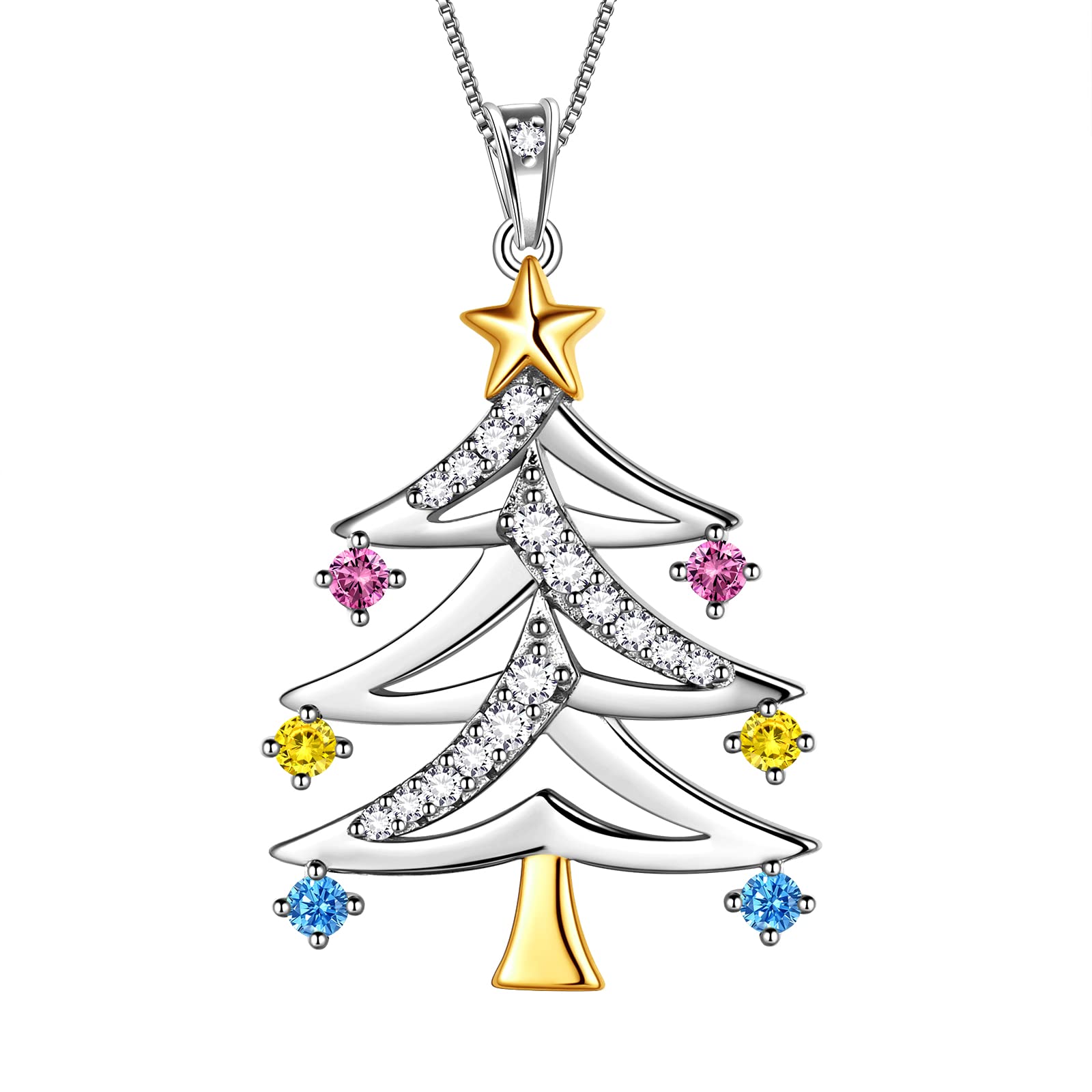 Aurora Tears 925 Sterling Silver Christmas Tree Pendant,Christmas Necklace Costume Jewelry Gift CZ Crystal Holiday Festival Jewelry Plant Pendant for Women