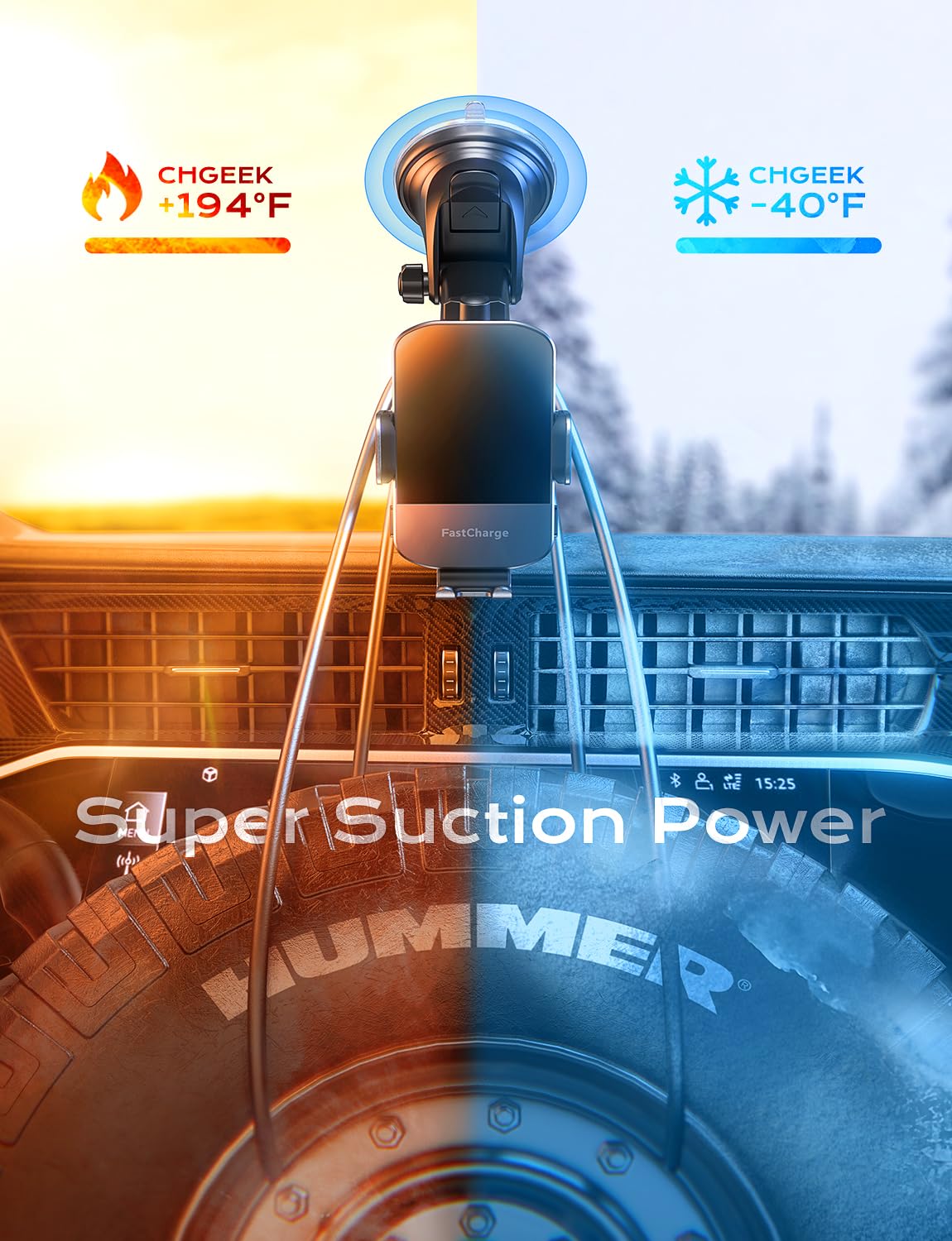 - 【Case Friendly & Flexible Angle Adjustment】Enjoy hassle-free charging through phone cases up to 6mm thick with our CHGeek phone holder for car. Please note that metal cases, magnets, credit cards, grips, and stands may interfere with charging. For optimal viewing and safe driving, the 360° rotating sphere and retractable & foldable bracket allow you to adjust the angle to your preference.