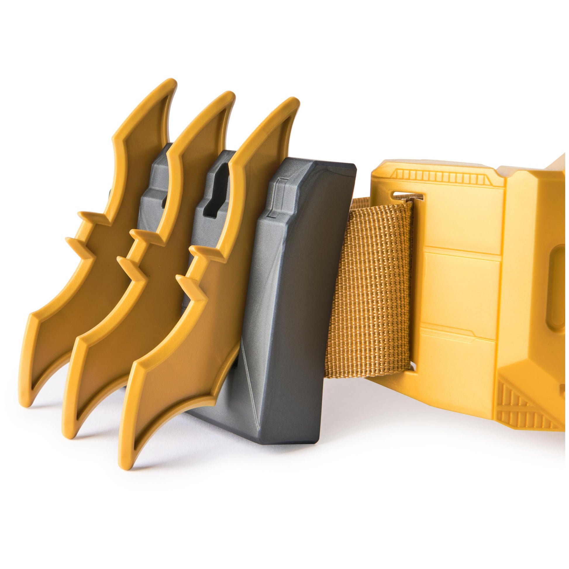 - STORAGE FOR GADGETS: The utility belt's special compartments house the included Batarangs and smoke pellets, and it’s compatible with the Batman Sword for a fully armed hero (sold separately)