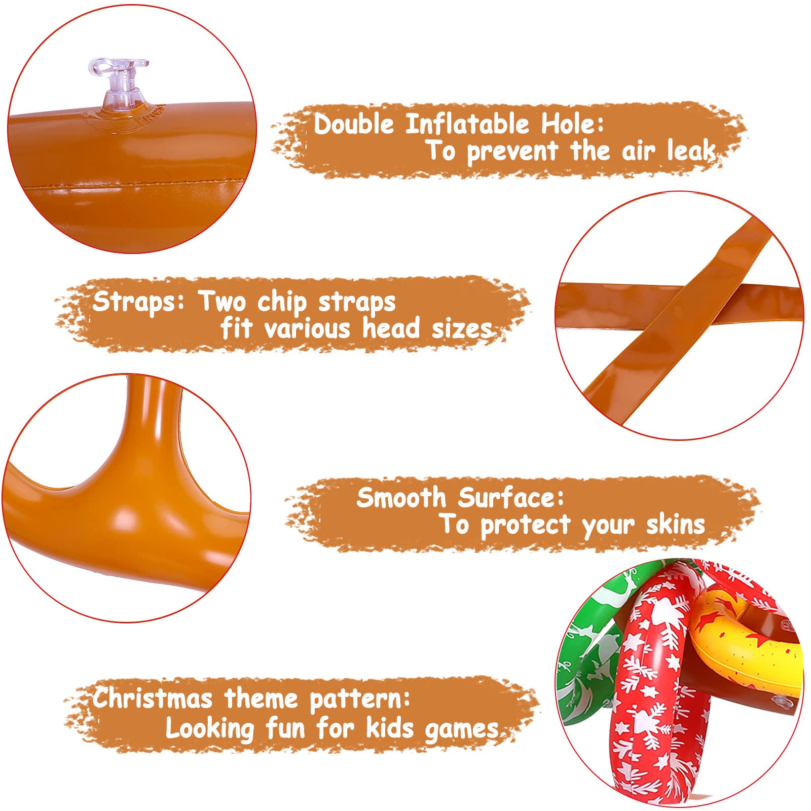 - Size: Inflatable Reindeer Antler is 33.5'(L) x 5.5'(inner ring size). Strap is 18.9’’. Rings are 7.28'. For Children Ages 3 and up.