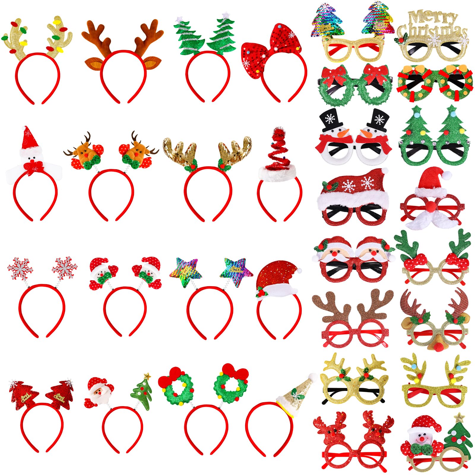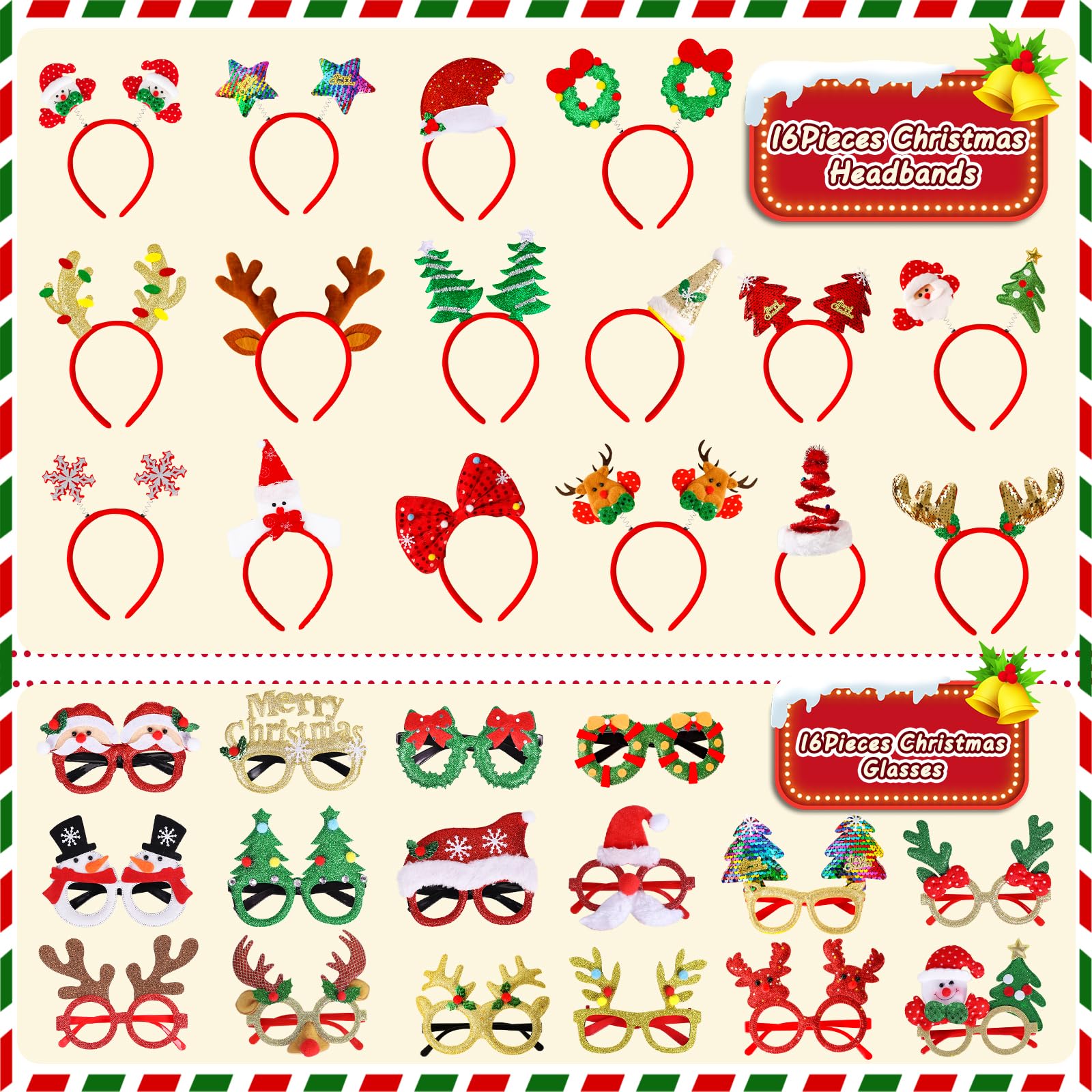 - Package included: One package included 16 different headbands and 16 different glasses frames,a full set of lovely Christmas head decorations , a variety of quantity and style for choice, you can hand them out as you like at parties and dress them up with family and friends.