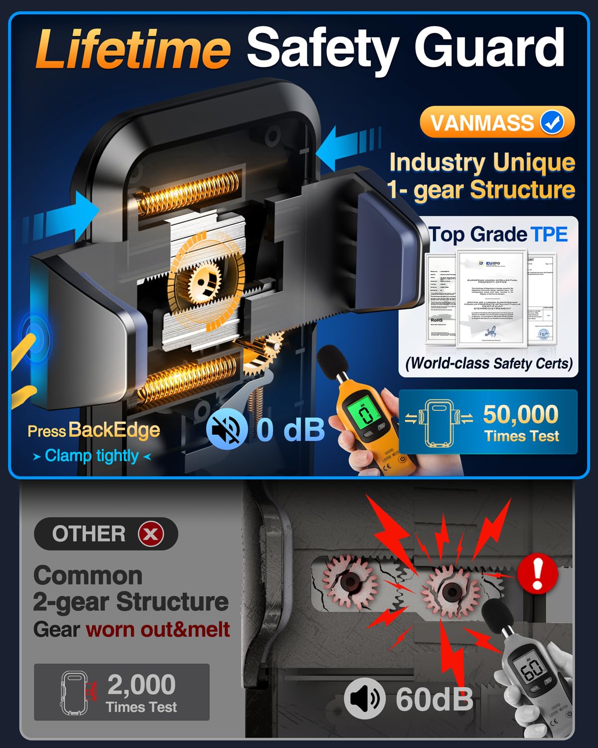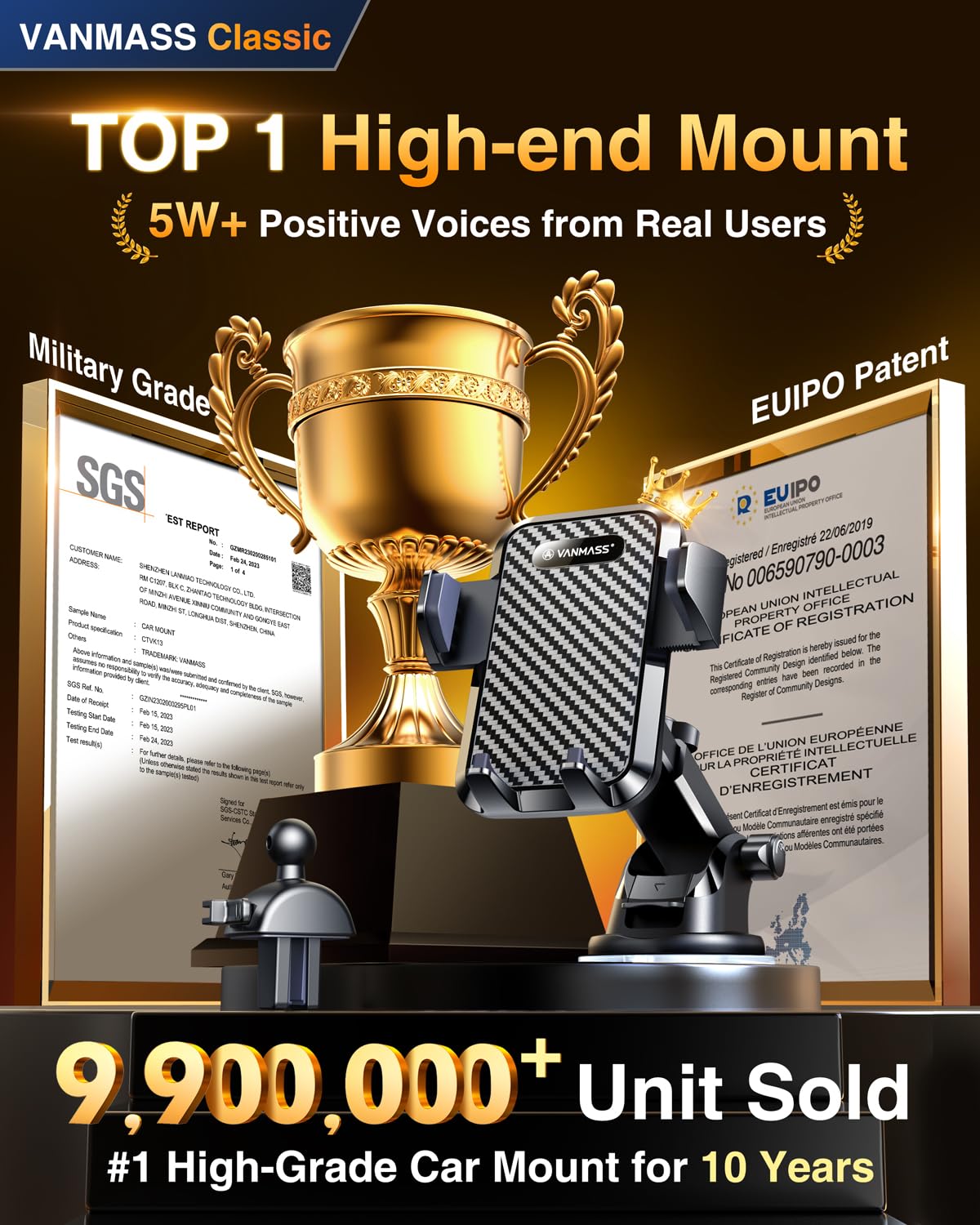 - ใ๐๐๐๐ ๐๐ก๐จ๐ข๐๐: ๐๐ข๐ ๐ก-๐๐ง๐ ๐๐๐ซ ๐๐จ๐ฎ๐ง๐ญ ๐๐ซ๐ฎ๐ฌ๐ญ๐๐ ๐๐ฒ ๐,๐๐๐,๐๐๐+๐๐ฌ๐๐ซ๐ฌ ๐จ๐ฏ๐๐ซ ๐๐ ๐๐๐๐ซ๐ฌใ2025 VANMASS car phone holder is certified by all authoritie5 (International Military-Grade Shockproof Cert No. GZMR230200285101, CP65,REACH,RoHS), based on Unique Grandmaster Design (EUIPO Patent No.006590790-0003), TOP Durable & Healthy Materials from 20,900 materials & Industry-Leading Safety Tests (Monthly 5,000+ open/close test; 100,000+km rugged road tests).